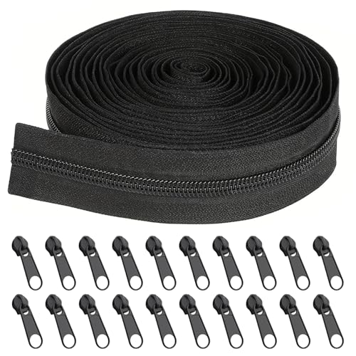 Fhioevt Schwarz Reißverschluss 10 m Nylon – Oändlig dragkedja med blixtlås i svart, meterware. Inkluderar 20 metallblixtlås – Ersättningsdragkedjor för bäddning, kuddar och jackor.