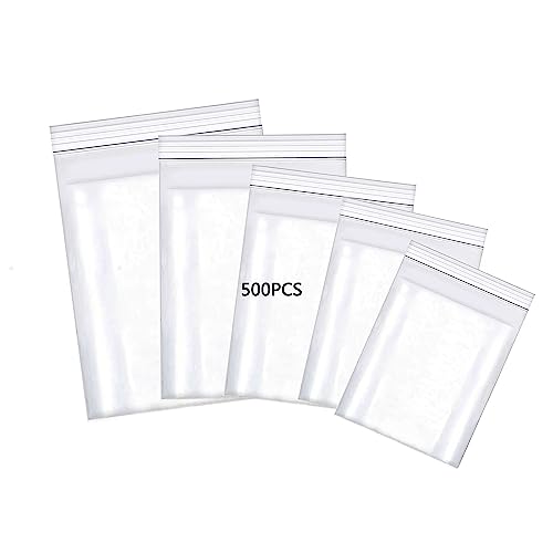HVDHYY Tryckförslutningspåse set blandade blixtlåspåsar 500 stycken 160 µ plastpåsar påse förslutningspåse återförslutningsbar 4 x 6 cm 6 x 9 cm 7 x 10 cm 8 x 12 cm 10 x 15 cm