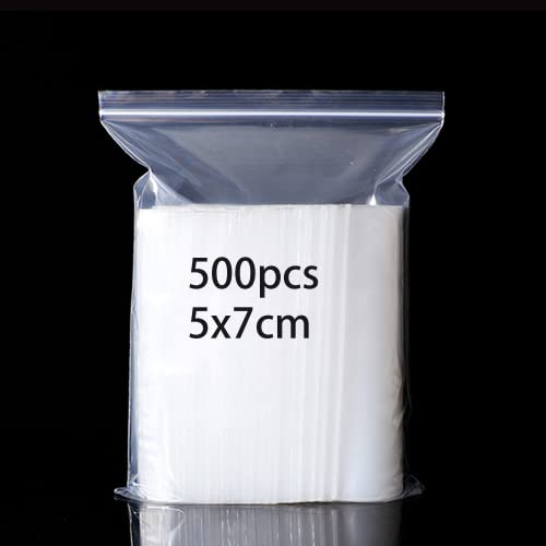 500 blixtlåspåsar små plastpåsar förslutning, återförslutningsbar blixtlåspåse, liten tryckförslutningspåse, fryspåse, blixtlås, polypåse 5 x 7 cm