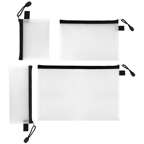LEVIATAN Set med 4 blixtlåspåsar A4, A5, A6 och 85 x 210 mm resväska transparent väska med dragkedja dokumentfickor vattentät väska förvaring av skrivmaterial, kosmetika