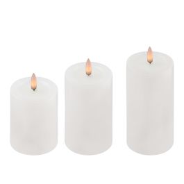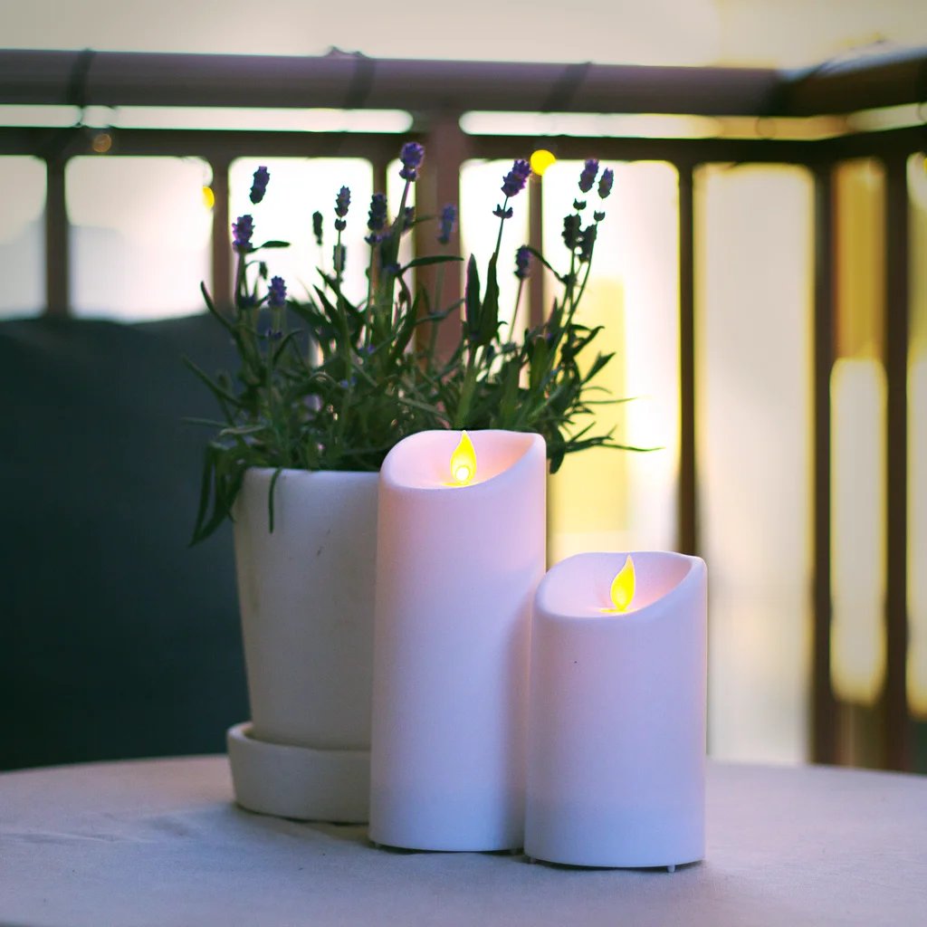 Utomhus LED blockljus m/3D-låga & fjärrkontroll, 3 st - vit