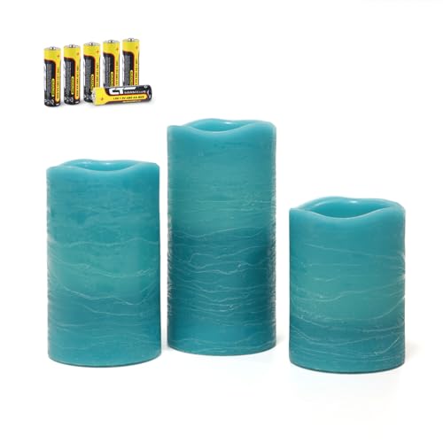 Rhytsing 3 flimrande flamlösa blockljus led med timer, realistiska batteridrivna ljus blå rustik design med varmt vit ljus, höjd 10/12,5/15 cm, batterier ingår