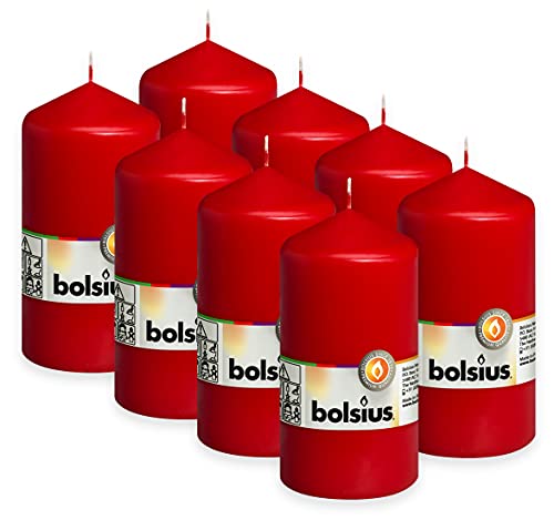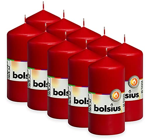 Bolsius släta blockljus – röd – 12 stycken – 15 x 7 cm – dekorativa hushållsljus – brinntid 42 timmar – oparfymerad – innehåller naturligt växtvax – utan palmolja