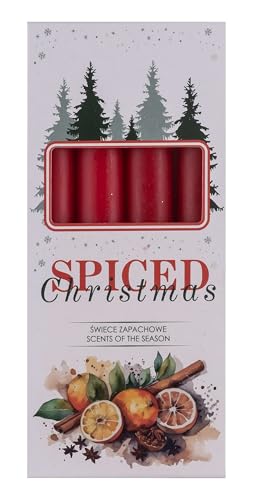 DONAU HOME Bordsljus spiced jul/paraffinljus/20 x 170 mm/4 stycken/vanilj/rött/blockljus set/dekoration ljus, vaxljus, för dekoration