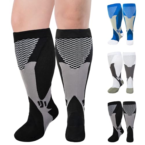 LEOSTEP 2XL-5XL plus size kompressionsstrumpor överdimensionerade för män och kvinnor, breda vader (3 par), blodcirkulation och återhämtning, ökad uthållighet, vandring, resestrumpor 20–30 mmHg,