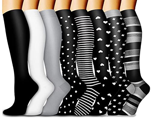 Kompressionsstrumpor för kvinnor och män (15–20 mmHg) (3/8 par), kompressionsstrumpor, stödstrumpor för sjuksköterskor, sport, flygning, resor, löpning, sport, graviditet, medicinsk, blodcirkulation, svart vit grå (8 par), Large-X-Large
