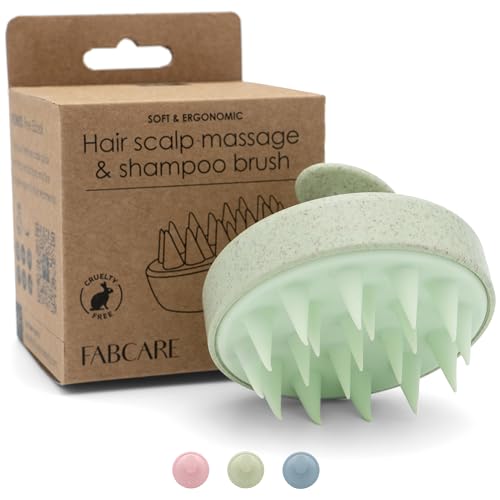 FABCARE massageborste för hårbotten | Huvudmassage och hårväxt för alla hårtyper | Vetehalm och silikon | Hårbottenskalning för vått och torrt hår | blodcirkulation, behandling torr hårbotten