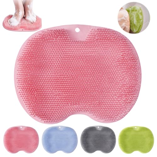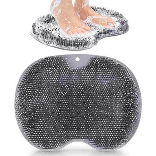 Fot- och ryggskrubber, silikon badmassageborste, massagematta för rengöring, exfoliering, blodcirkulation (grå)
