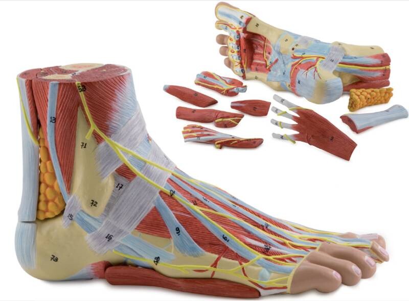 Fotmodell med ledband, muskler, blodkärl och nerver – 9 delar