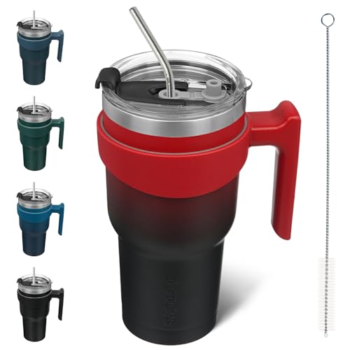 BJPKPK 900 ml tumlare med handtag och sugrör rostfritt stål isolerade tumblerkoppar för vatten eller iskaffe, blodmåne