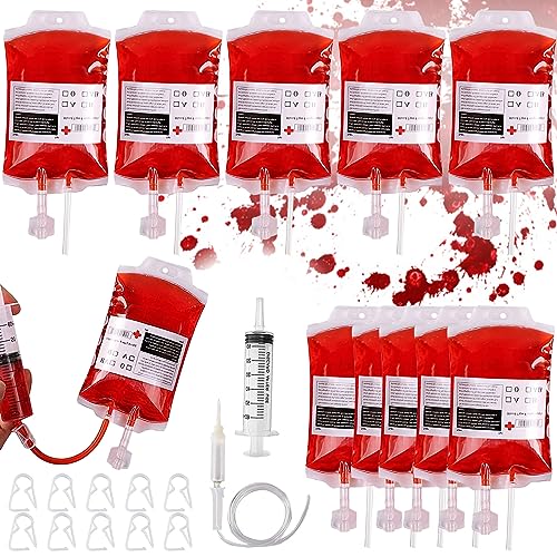 Halloween dryckeskärl blodpåse, 10 stycken fylla blodpåsar, väskor blodpåse dryckesväskor, för cosplay vampire zombie fest rekvisita dekoration