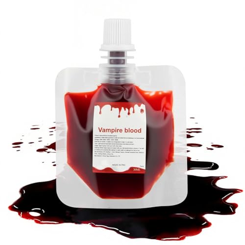 Alaoo Halloween konstblod, 30 ml halloween blodpåse, falskt blod för halloween makeup, halloween falsk blod tvättbar för karnevaler, simulerade sår, film, teater, ofog