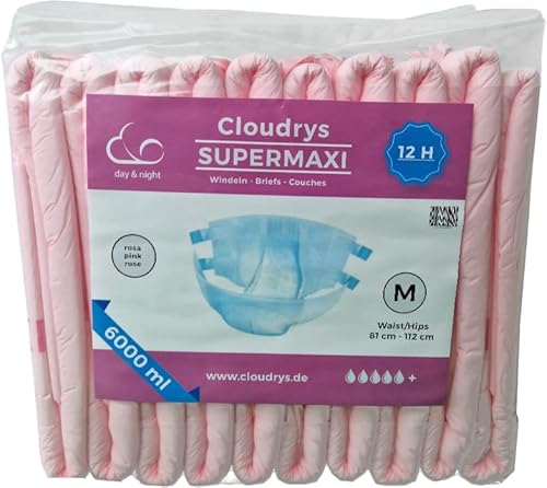 Cloudry's Supermaxi rosa blöjor med folie för vuxna, Medium, 1 st