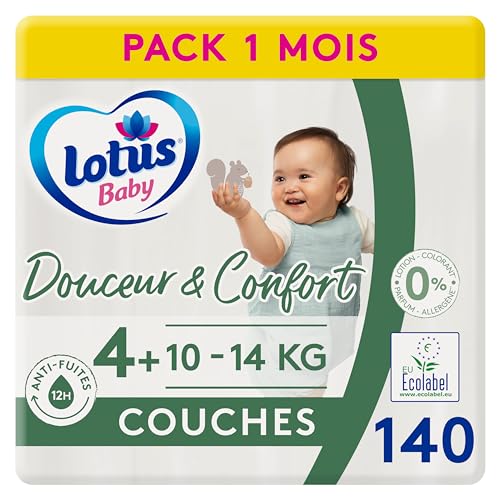 Lotus Baby Douceur Naturelle - blöjor storlek 4+ (10–14 kg) 1 månad pack - 140 lager