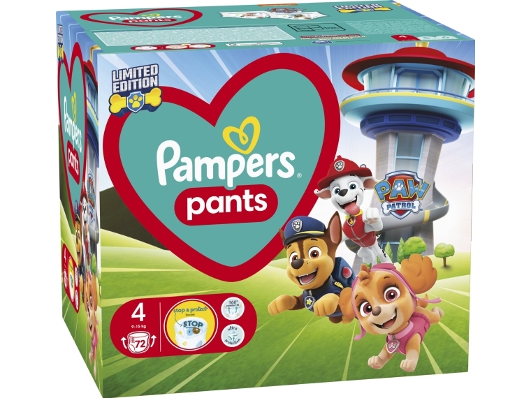 Pampers Active Baby Pants Blöjor - Dog Patrol Pass, Storlek 4, 9-15Kg, 72 St.