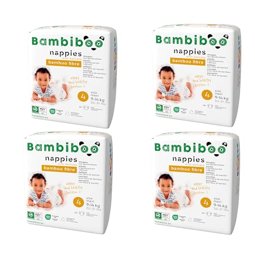 Bambiboo - Hudvänliga blöjor med mjuk bambufiber för bebisar - Engångsblöjor - Hudskydd - Skonsamma, bekväma och mjuka - Storlek 4 (maxi), 18 delar