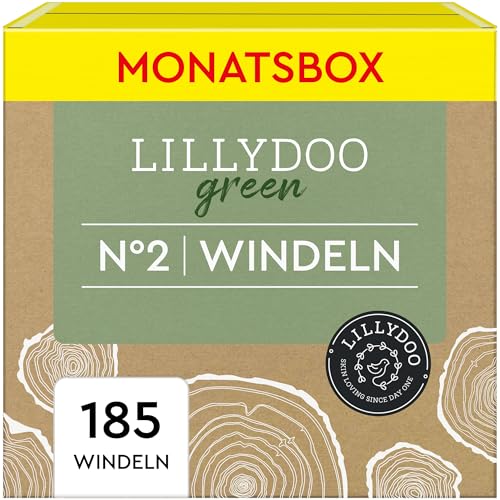 LILLYDOO Gröna miljövänliga blöjor, storlek 2 (4-8 kg), månadslåda (185 blöjor) (FSC Mix)