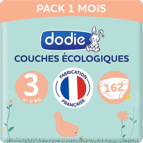Dodie - ekologiska och franska blöjor - storlek 3 (4 till 9 kg) - 1 månad förpackning 162 lager (set om 3 x 54)