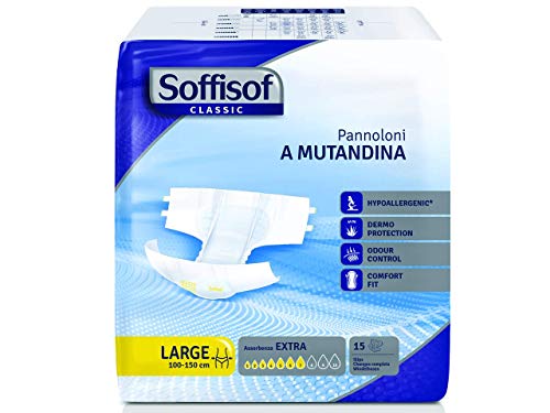 SOFFISOF Classic elastiska blöjor för vuxna, storlek L, medium inkontinens, extra sugkraft, per dag, 6 förpackningar om 15 st.