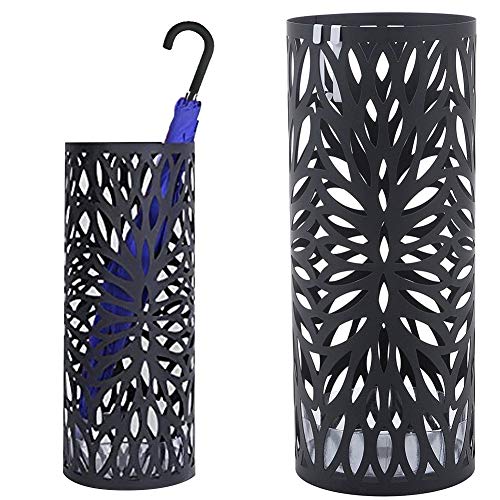Bakaji Paraplyställ Iron Stand Design Paraplyhållare Rund form Svart Färg med Blomblad Inläggsdekoration Bricka Droppsäker och Krok Fällbara Paraplyer