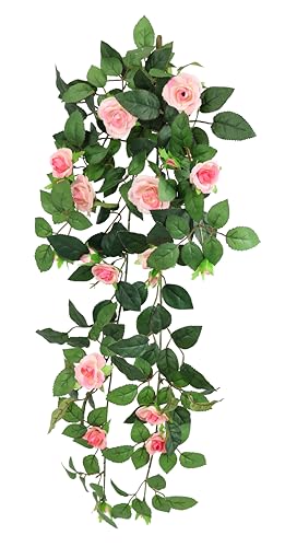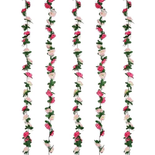 Weldomcor 5 stycken konstgjord rosa girlang 2,45 meter blomgirlang rosor vinstockar sidenblommor utomhus hängande konstgjorda blommor dekoration för bröllopsbåge sovrum vägg bakgrund trädgård