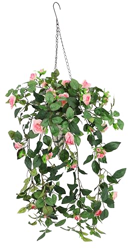 Konstgjord rosberlock 80 cm med metallkorg och hängande enhet, rosdekoration stor rosbukett, konstgjorda blommor, sidenblommor, blomgirlang, rosenranka, hängande ampel, bröllop