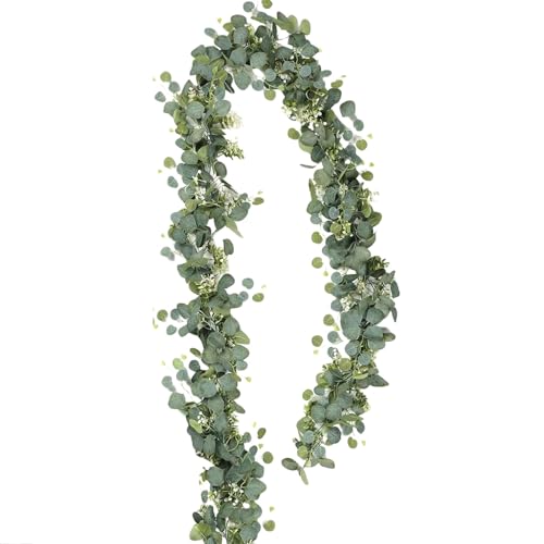 1 st eukalyptus, dekoration, girlang, 2 x 1,8 m, blomgirlang, vår för inomhusbruk, utomhus, konstgjord eukalyptusgirlang med krok, realistisk enkel skötsel, dekoration för bröllop, trädgård, balkong