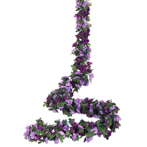 Weldomcor 5 stycken konstgjord lila girlang 2,45 meter blomgirlang rosor vinstockar sidenblommor utomhus hängande konstgjorda blommor dekoration för bröllopsbåge sovrum vägg bakgrund trädgård
