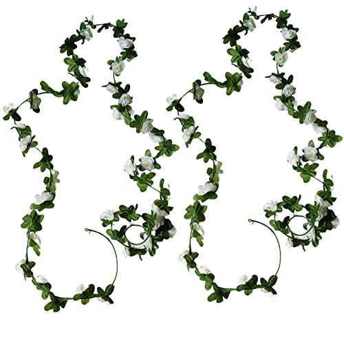 Dremisland 2 st/12 fot blomgirlang eukalyptus hängande konstgjorda växter falsk vit ros girlang silkesblommor falsk murgröna vinrankor grönska girlang för bröllop hem trädgård fest juldekor