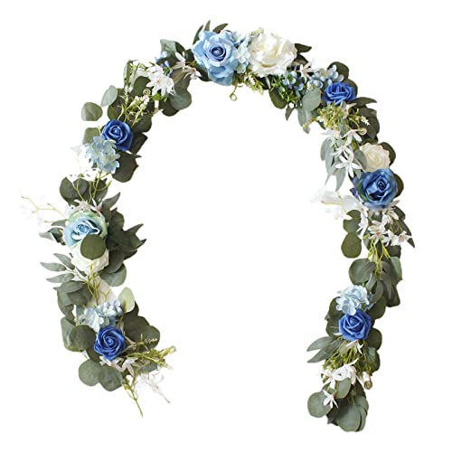 LEMCC 2 m konstgjord ros blomgirlang blå ros vinrankor med gröna löv hängande ros murgröna för bröllopsfest hem vägg trädgård bordsdekor