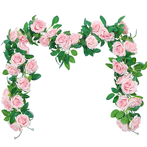 Weldomcor 8 stycken konstgjord rosa girlang 2,45 meter blomgirlang rosor vinstockar sidenblommor utomhus hängande konstgjorda blommor dekoration för bröllopsbåge sovrum vägg bakgrund trädgård