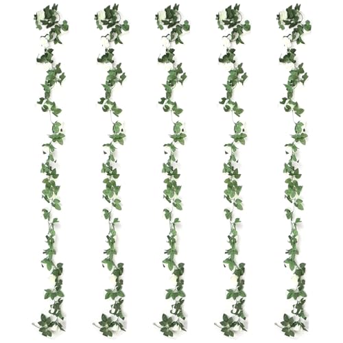 XDGBGFN 5 stycken konstgjord girlang 2,5 meter konstgjord blomgirlang utomhus, konstgjorda girlanger för bröllop, juldekoration, trädgård, fest, väggdekoration (vit)