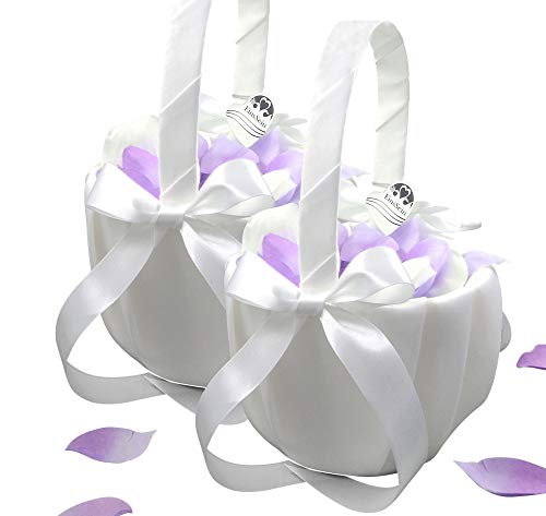 EinsSein 2 x Blomkorg Julia 16 x 24 x 17 vita flickkorgar för bröllop flickor blommor satin med blommiga kronblad flickkorg ros av blomstergirlang bascket ceremoni ros vintage set pärlor dekorationer