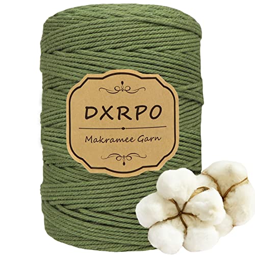 DXRPO Makramégarn/bomullsgarn, 3 mm x 300 m, makramérep för gör-det-själv-makramé som vägghänge, blomkorg, juldekoration, presenter till goda vänner, växthängare eller boho-dekoration, olivgrönt
