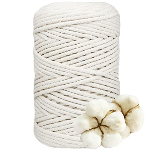 DXRPO Makramégarn/bomullsgarn, 5 mm x 100 m, makramérep för gör-det-själv-makramé som vägghänge, blomkorg, juldekoration, presenter till goda vänner, växthängare eller boho-dekoration, vitt