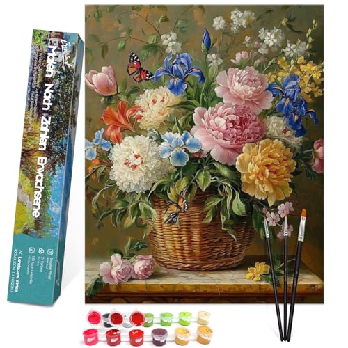 Bougimal Måla efter siffror vuxna landskap med penslar och akrylfärger ingår - 40 x 50 cm, blomkorg, utan ram