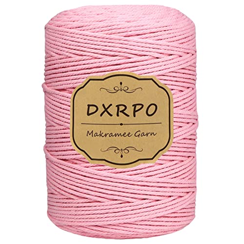 DXRPO Makramégarn, naturligt bomullsgarn för att knyta makramé, perfekt snöre för vägghängning, blomkorg, gör-det-själv-hantverk, växthängare eller som boho-dekoration, 3 mm x 300 m (rosa)