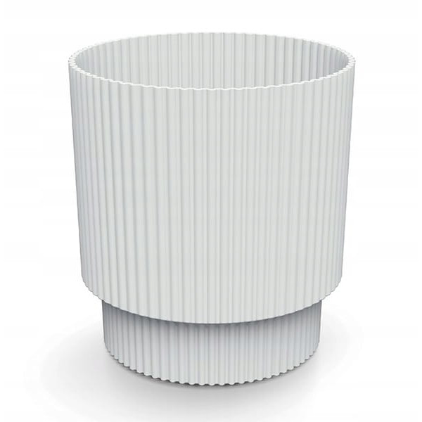 Vit ribbad blomkruka på fot av plast 13,8x12,8 cm omslag Milly Round