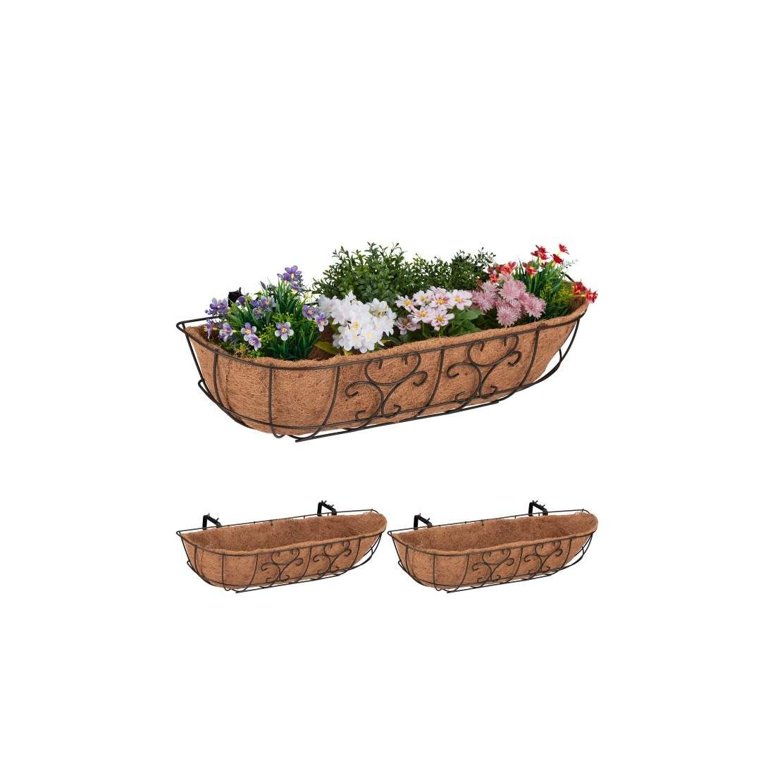 Relaxdays Blomlåda balkong, set om 3, balkonglådor för hängning, järn och kokosfiber, HBT 21 x 76 x 22 cm, brun/natur
