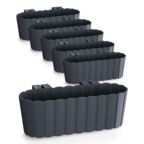 Spetebo Blomlåda för balkong med hållare 39 x 13 cm – set om 6 – plasträcke planteringskruka i antracit – trädgård blomkruka planteringslåda för upphängning