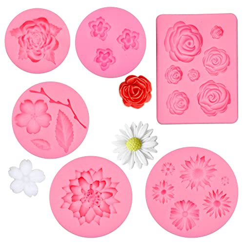 MYPRACS Rosblomma silikonformar tusensköna blomma fondant form för tårta dekoration muffinsdekoration polymer lera godis choklad tuggummi pasta set med 4