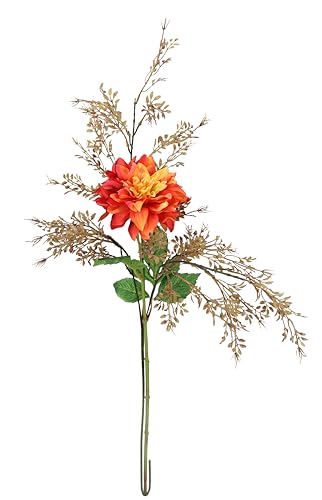 Flair Blomma konstgjord blomma dahlia sidenblommor blomblad enkelblomma stjälk enda stjälk dekorativ blomma blomdekoration höstgren höstblommor höstblomma, orange, 62 x 18 x 10 cm, 02116OR