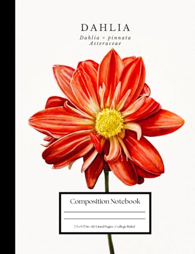 Dahlia Composition Notebook: Botanical Flower Journal: College Ruled · 110 Pages · 7.5 × 9.75 in