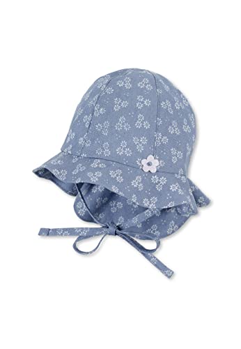 Sterntaler Mössa med nackskydd blomma för flickor – barnmössa med UV-skydd 30 – solhatt för barn av bomull, blå, 51