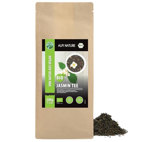 Alpi Nature Jasmintee BIO 200 g, jasmin torkade blommor, grönt te ekologiskt med jasminblommor, naturligt koffeinhaltigt
