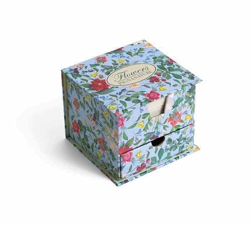 Pigna, Skrivbordsorganisatör med låda, Memo Nature Flowers, elegant blommig design, perfekt för skrivbord, arrangör kompakt, blå bakgrund, 1 st