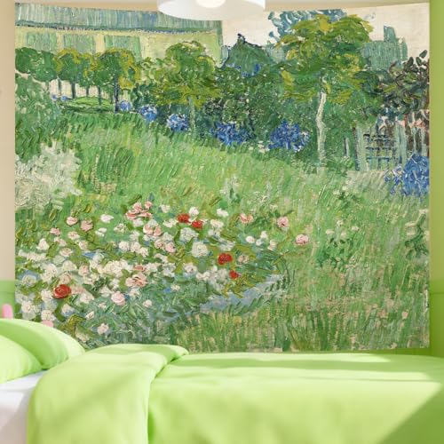 Gobeläng för sovrum Van Gogh gobeläng vägg hängande blomma vägg gobeläng estetik blommig gobeläng stor konst rum dekor gobeläng vägg hängande grön affischer bakgrund för sovsal vardagsrum (130 cm x