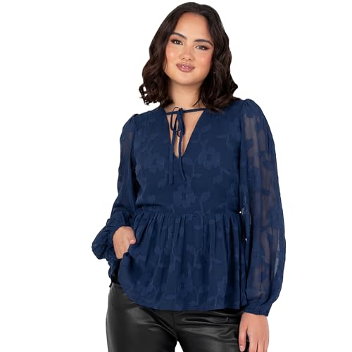 Lovedrobe Dam blommig topp damblus lång ballong ärm V-hals peplum duk slips framsida smart ledig kontorskläder dam, marinblå, 52