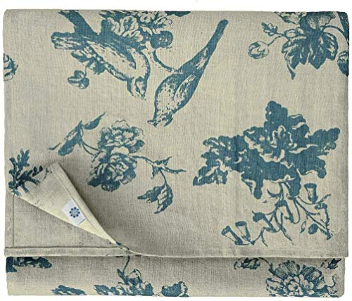 Linen & Cotton Högkvalitat Bordsduk Tyg Bordslinne Flores med Blommig Motiv - 100% Linne, Beige Naturlig Blå (140 x 300 cm) Tvättbar Duk Vintage Rektangulär för Hem Kök Matbord Vardagsrum Dekoration