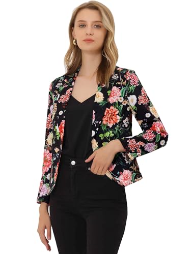 Allegra K kvinnors öppen front kontor kort blazer jacka, Svart röd-blommig, M